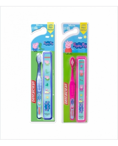 PRODUTOS>INFANTIL>ACESSORIOS HIGIENE INFANTIL>ESCOVA DENTAL INFANTIL PEPPA PIG COM ESTOJO EXTRA MACIA DENTALCLEAN