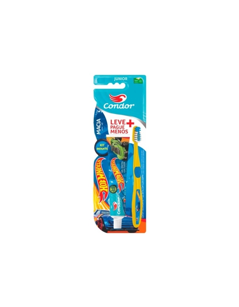 PRODUTOS>INFANTIL>ACESSORIOS HIGIENE INFANTIL>KIT ESCOVA DENTAL + GEL C/FLUOR 50G HOT WHEELS JR REF8160-0 CONDOR