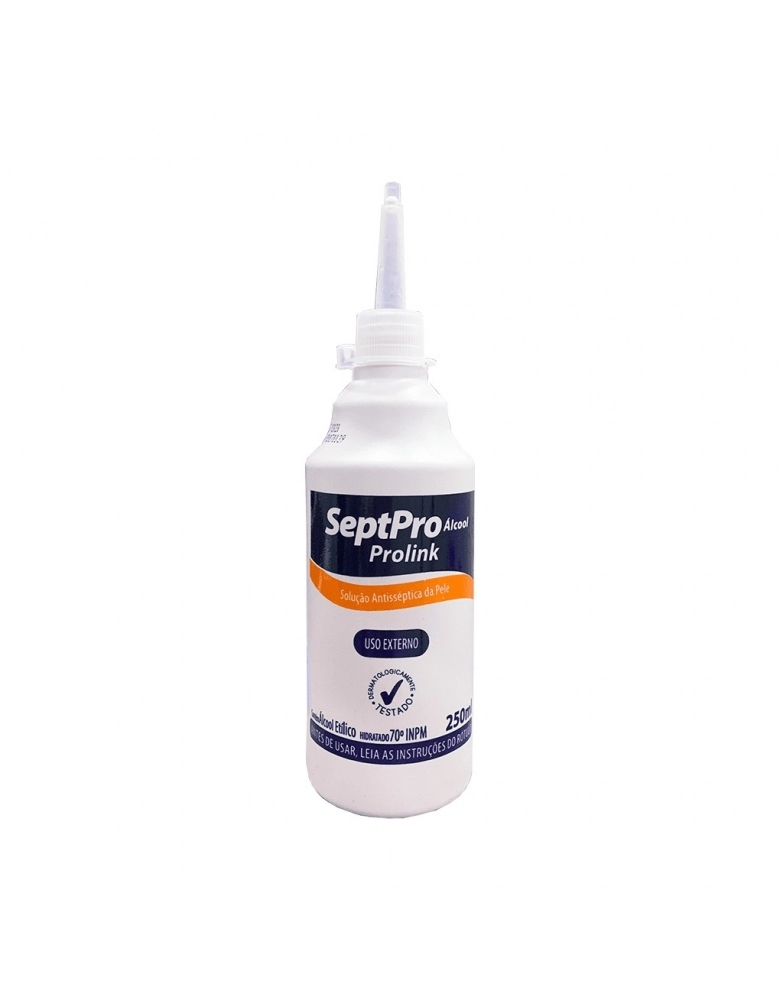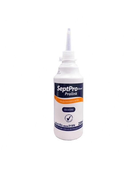 Solucao alcoolica para antissepsia e higienizacao de superficies e pele. Eficaz na eliminacao de bacterias e fungos. Indispensavel em ambientes clinicos e domesticos. PROLINK.