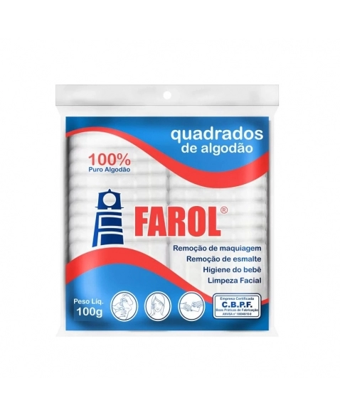 Algodao hidrofilo de alta absorcao para curativos, limpeza e higiene pessoal. Material macio e atossico, ideal para uso diario em cuidados de saude. FAROL.