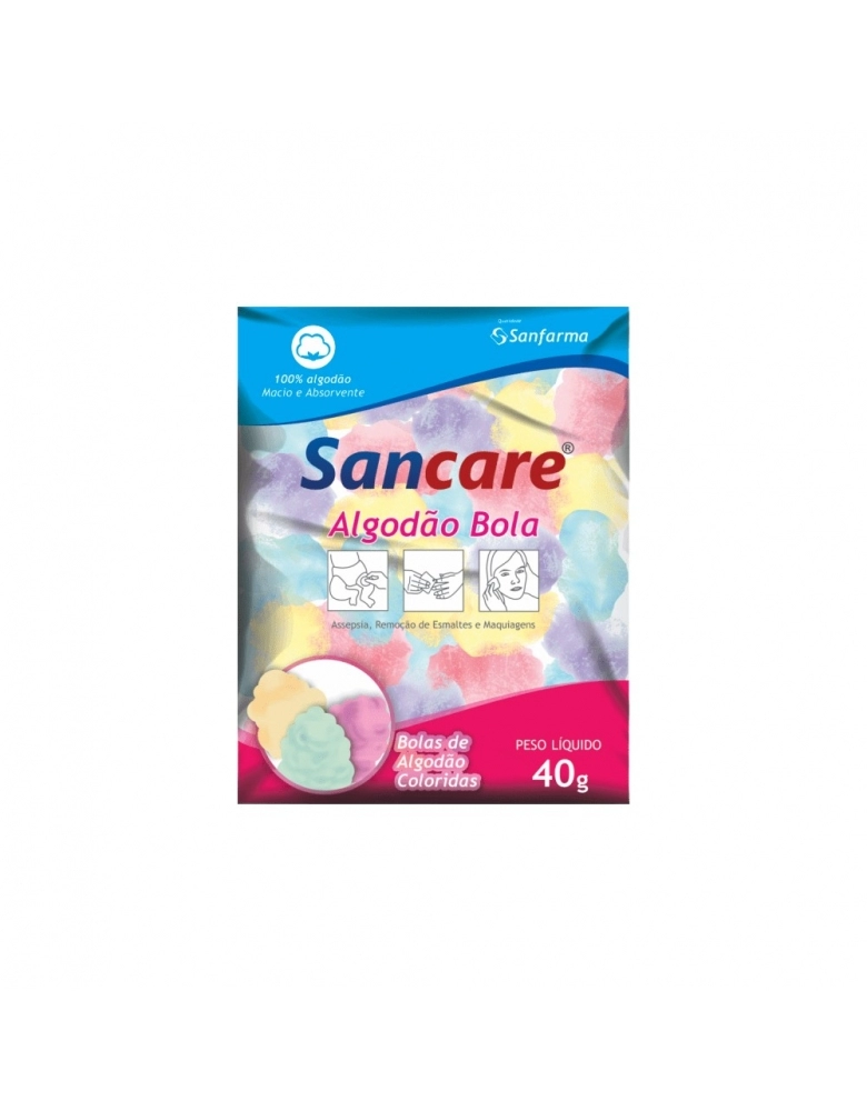 Algodao hidrofilo de alta absorcao para curativos, limpeza e higiene pessoal. Material macio e atossico, ideal para uso diario em cuidados de saude. SANFARMA.