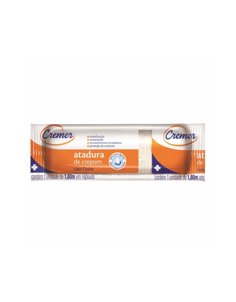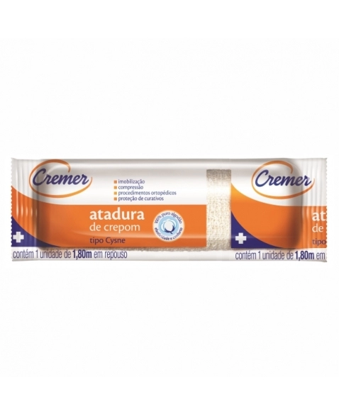 Atadura de alta qualidade para enfaixamento e imobilizacao. Textura crepe que se molda ao corpo, proporcionando suporte e conforto. Indicada para curativos, enfaixamentos funcionais e ortopedia. CREMER.