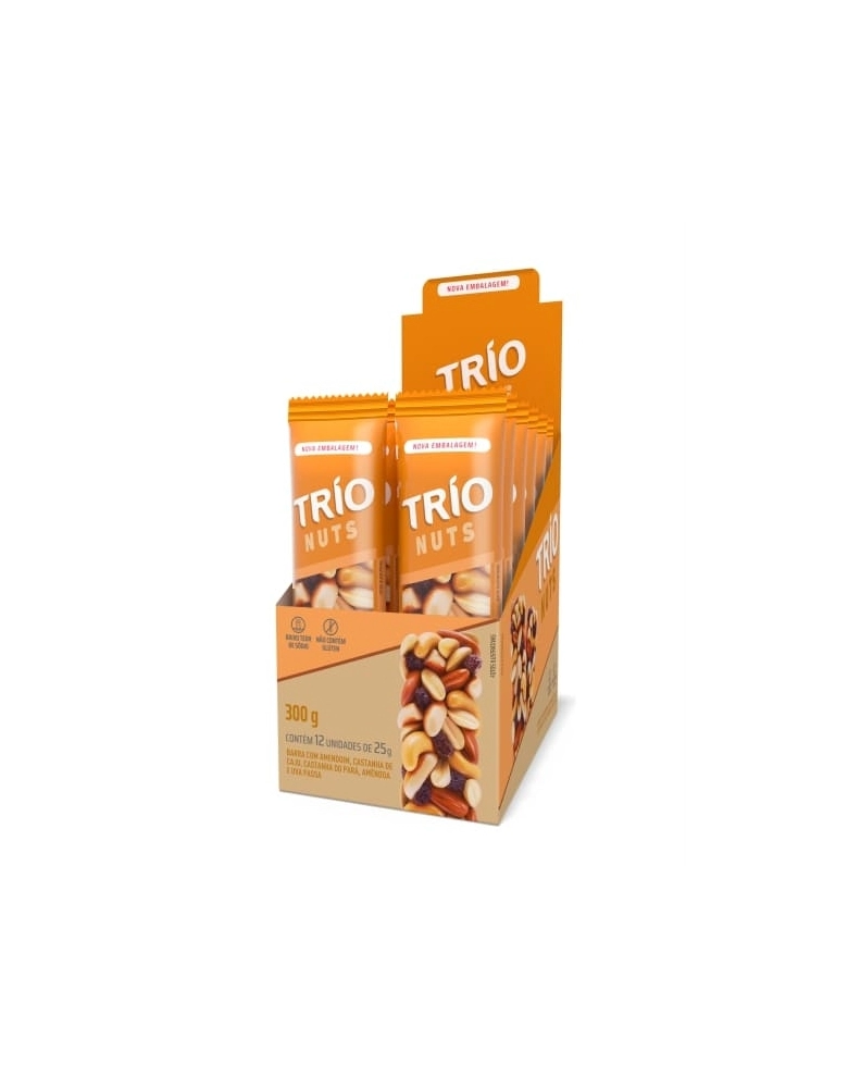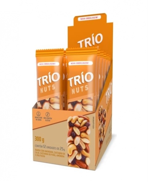 Barra de cereal e nuts com ingredientes naturais selecionados. Fonte de energia e fibras, ideal como lanche saudavel a qualquer hora do dia. TRIO.