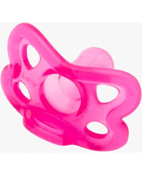 Chupeta com design ortodontico que respeita o desenvolvimento natural da boca e dentes do bebe. Material de silicone atossico, macio e flexivel. Facil de higienizar. LOLLY.