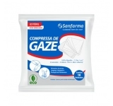 Compressa de gaze esteril para curativos e procedimentos cirurgicos. Material macio e absorvente, garantindo higiene e seguranca no manuseio de ferimentos. SANFARMA.