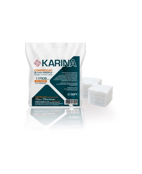 Compressa de gaze esteril para curativos e procedimentos cirurgicos. Material macio e absorvente, garantindo higiene e seguranca no manuseio de ferimentos. AMERICA.