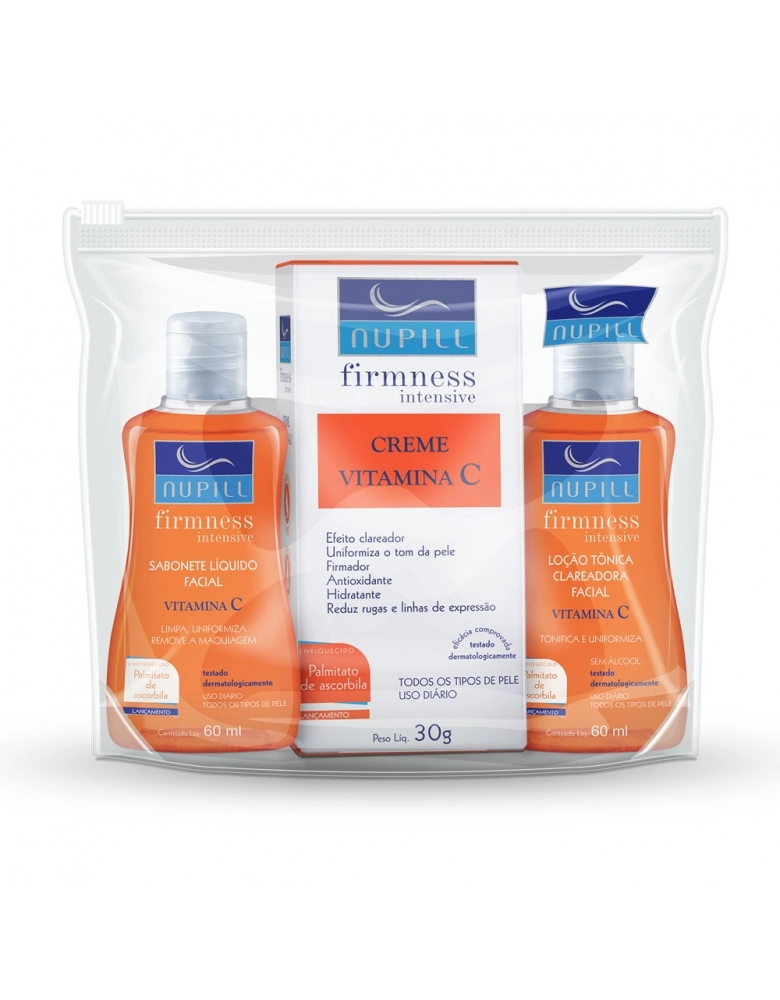 PRODUTOS>COSMÉTICOS>CUIDADOS FACIAIS>KIT VIAGEM VITAMINA C (SABONETEFACIAL/LOC.CLAREADORA/CR VIT C) NUPILL
