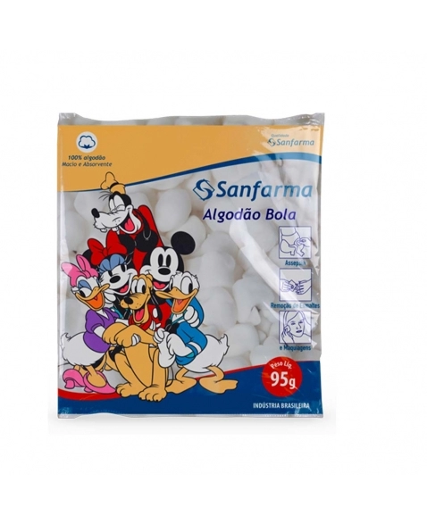 PRODUTOS>CUIDADOS AO PACIENTE>CURATIVOS>ALGODÃO BOLA 95G MICKEY SANFARMA