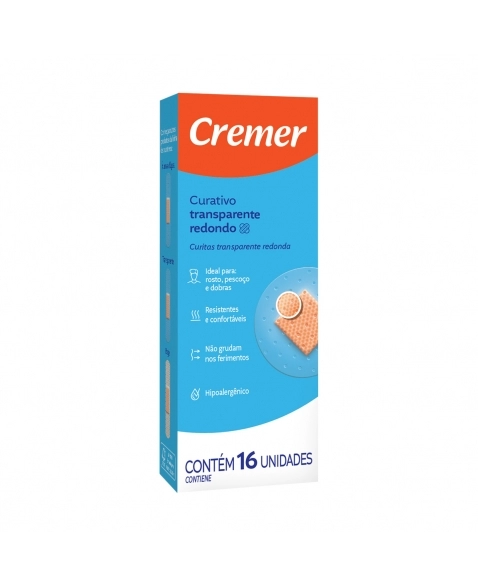 Curativo adesivo para protecao de ferimentos superficiais. Alta aderencia e material respiravel, garantindo conforto e prevencao de infeccoes. Ideal para uso domiciliar e profissional. CREMER.