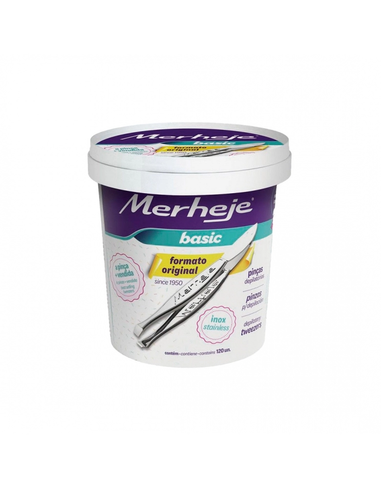 PRODUTOS>COSMÉTICOS>CUTELARIA>PINCA DEPILATORIA BASIC INOX POTE COM 120UN MEREJE