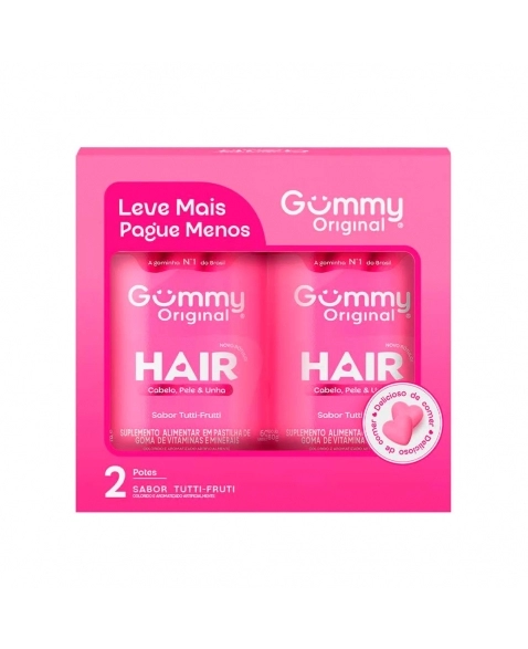 Suplemento alimentar desenvolvido para complementar a dieta e contribuir com o bem-estar. Formula com ingredientes selecionados e de alta biodisponibilidade. GUMMY HAIR.