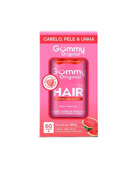 Suplemento alimentar desenvolvido para complementar a dieta e contribuir com o bem-estar. Formula com ingredientes selecionados e de alta biodisponibilidade. GUMMY HAIR.