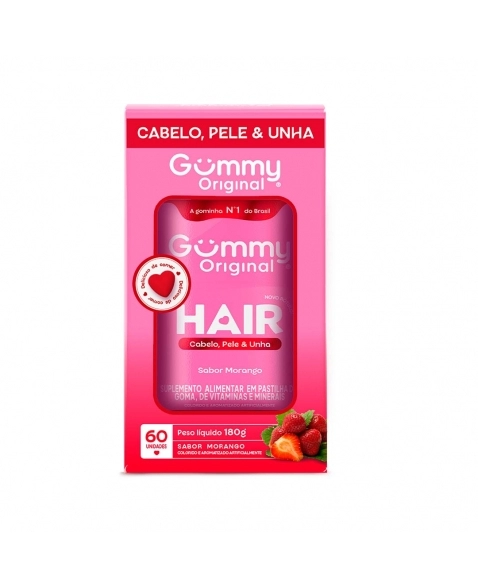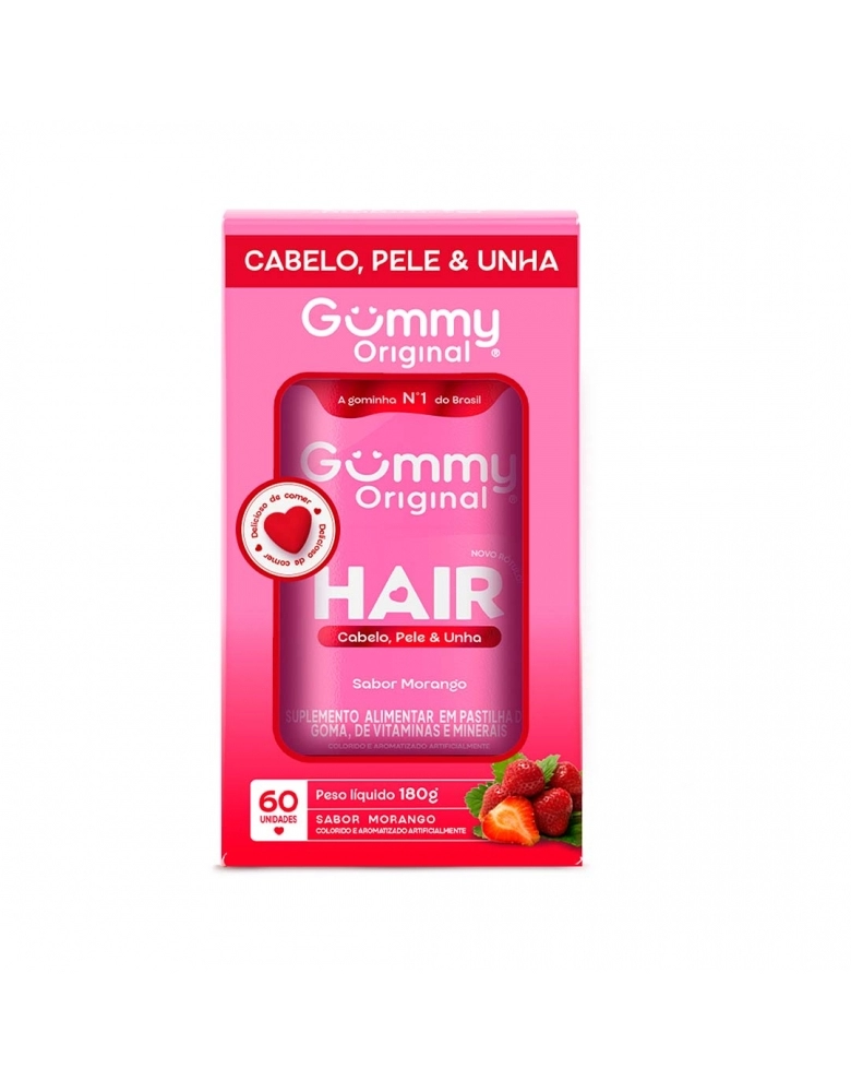 Suplemento alimentar desenvolvido para complementar a dieta e contribuir com o bem-estar. Formula com ingredientes selecionados e de alta biodisponibilidade. GUMMY HAIR.