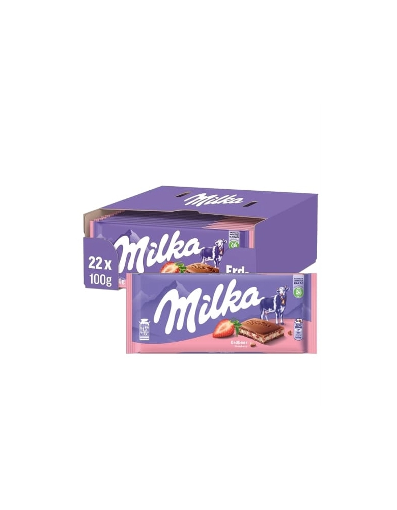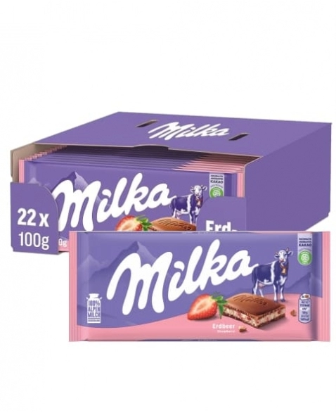 PRODUTOS>ALIMENTOS>DOCES & CHOCOLATES>CHOCOLATE BARRA STRAWBERRY MORANGO 100G MILKA