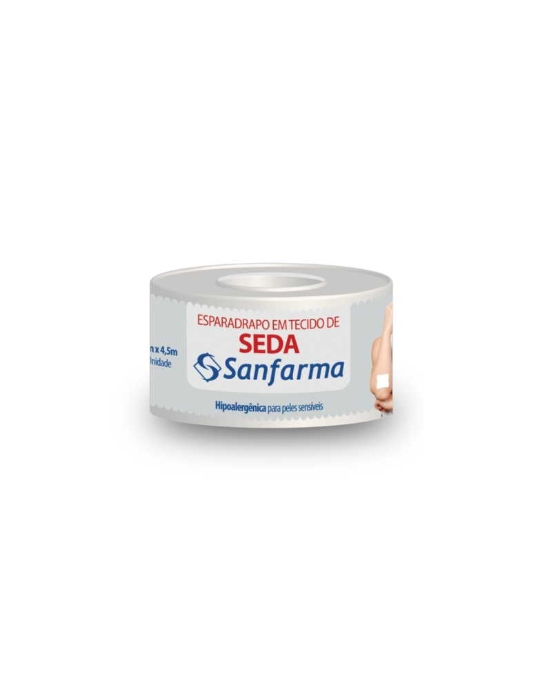 Fita adesiva hipoalergenica para fixacao de curativos e ataduras. Alta aderencia, porem de remocao suave da pele. Indicada para uso clinico e domiciliar. SANFARMA.