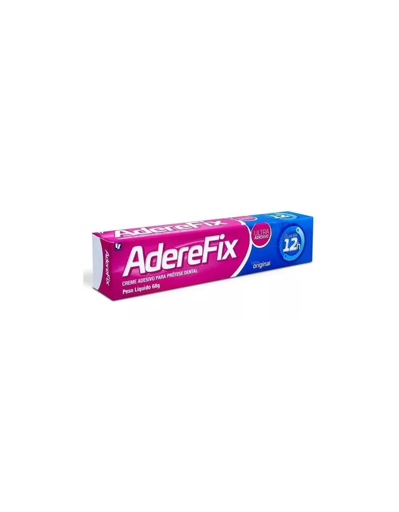 Fixador para protese dental que garante seguranca, conforto e confianca durante o dia. Formula resistente a alimentos e liquidos, de facil remocao. ADEREFIX.