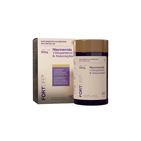 PRODUTOS>NUTRACÊUTICOS>FORTLIFE>NIACINAMIDA + DEXPANTENOL E ASSOCIACOES 1000MG C/60 CAPS FORTLIFE