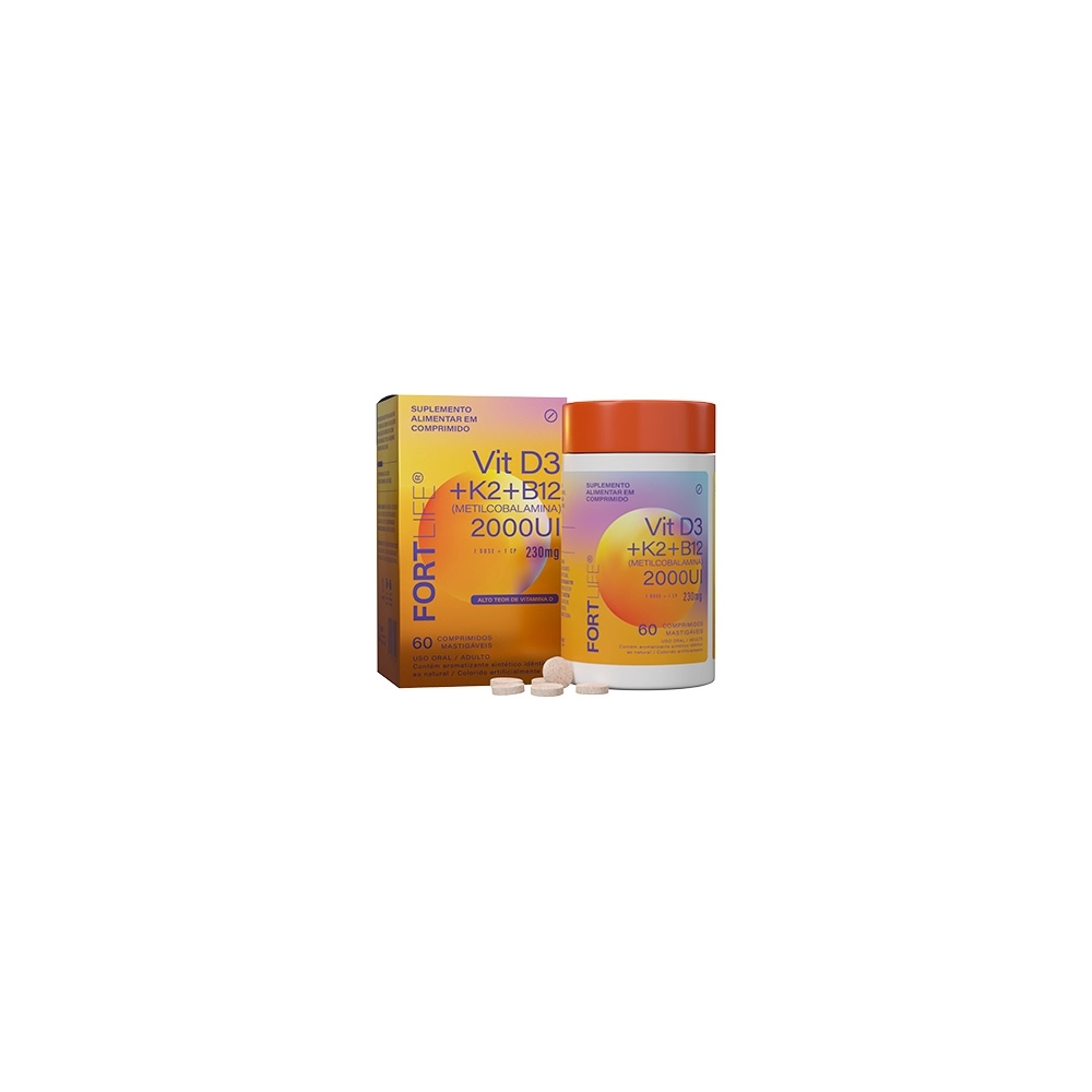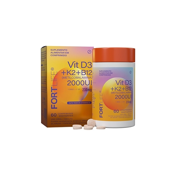 PRODUTOS>NUTRACÊUTICOS>FORTLIFE>VITAMINA D3 + K2 + B12 230MG ADULTO C/60 COMPR MASTIGAVEIS FORTLIFE