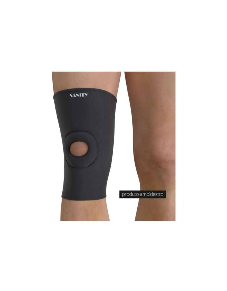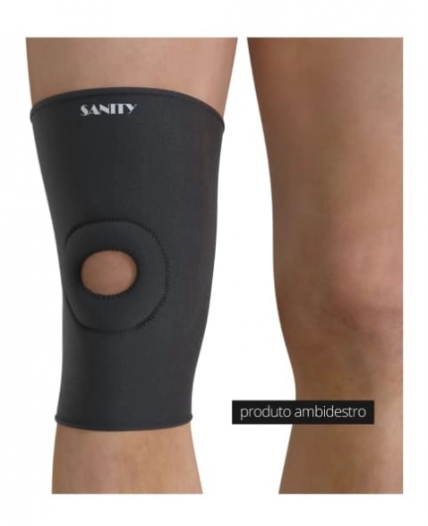 Joelheira ortopedica para suporte e estabilizacao do joelho. Indicada para pratica esportiva, recuperacao de lesoes e uso diario. Material elastico de alta durabilidade. Disponivel em diferentes tamanhos. SANITY.