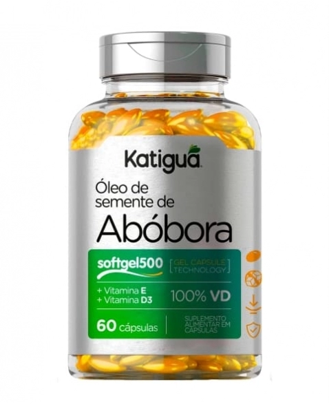 PRODUTOS>NUTRACÊUTICOS>KATIGUA>OLEO DE SEMENTE ABOBORA + VIT 500MG COM 60 CAPS KATIGUA