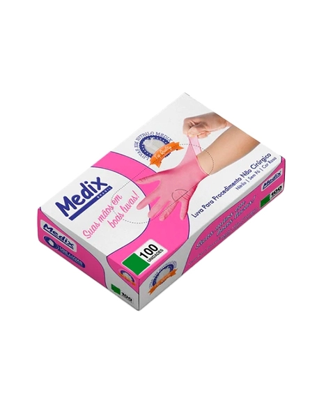 PRODUTOS>HOSPITALARES>LUVAS>LUVA NITRILICA ROSA SEM TALCO M COM 100 MEDIX