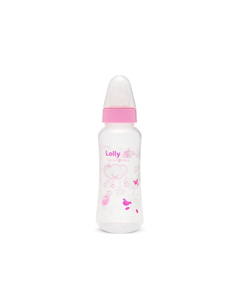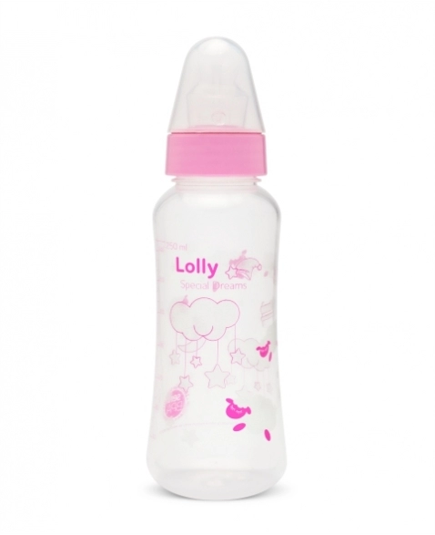Mamadeira com bico anatomico que facilita a aceitacao pelo bebe. Material resistente, sem BPA, de facil higienizacao. Graduacao em ml para controle preciso da quantidade. LOLLY.