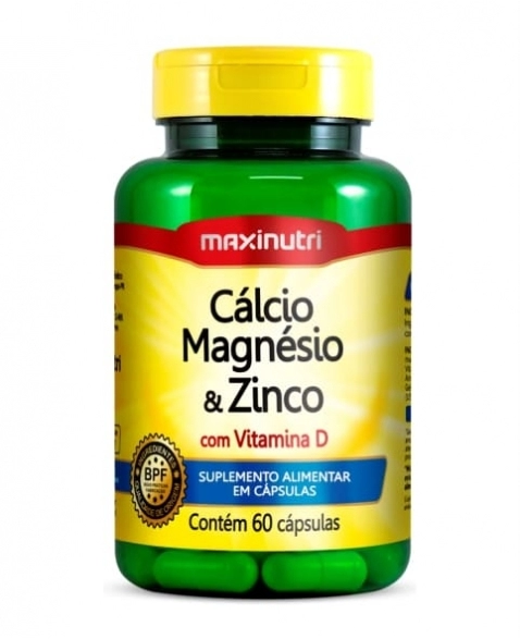 PRODUTOS>NUTRACÊUTICOS>MAXINUTRI>CALCIO + MAGNESIO + ZINCO COM 60 CAPS MAXI MAXINUTRI