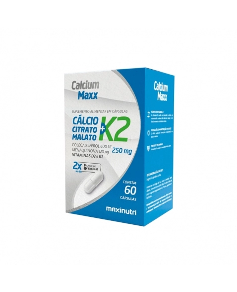 PRODUTOS>NUTRACÊUTICOS>MAXINUTRI>CALCIUM MAXX K2 + CALCIO CITRATO MALATO 250MG + VIT D3 COM 60 CP MAXINUTRI