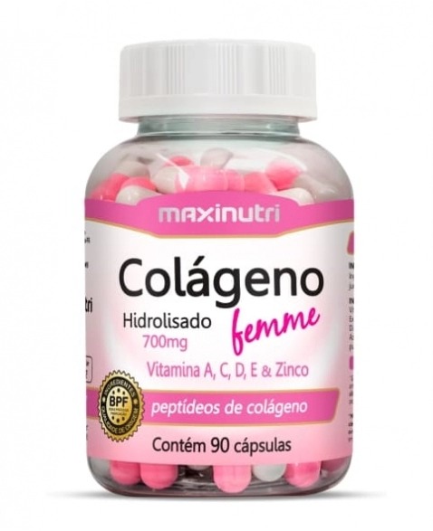 PRODUTOS>NUTRACÊUTICOS>MAXINUTRI>COLAGENO HIDROLISADO FEMME COM 90 CAPS MAXINUTRI