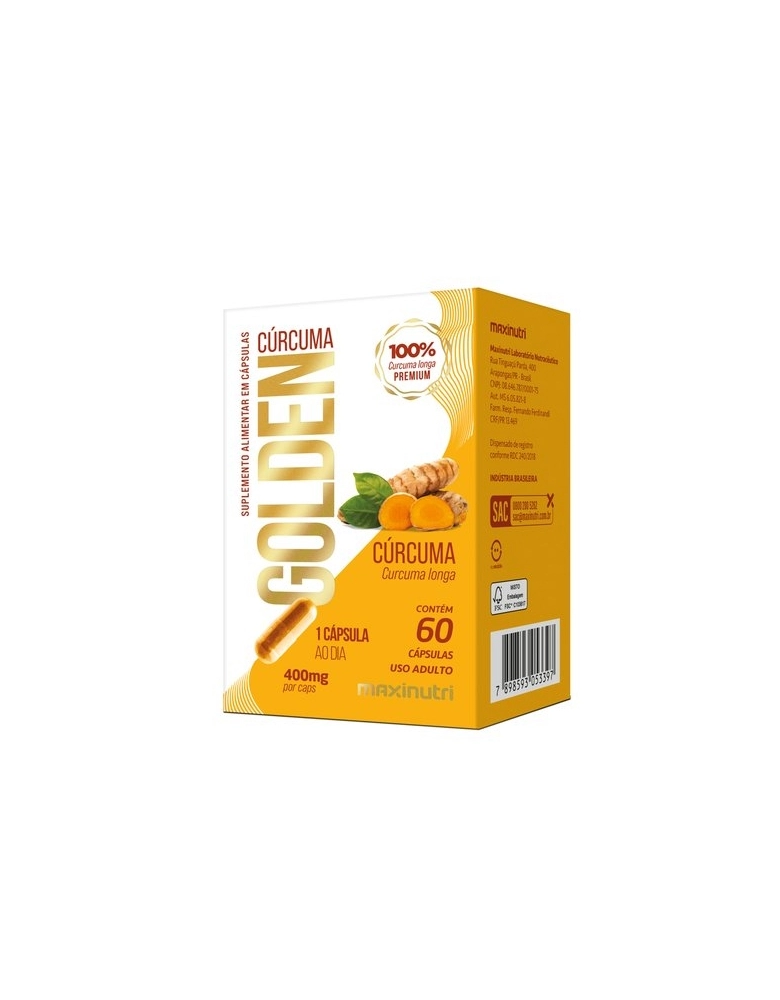 PRODUTOS>NUTRACÊUTICOS>MAXINUTRI>CÚRCUMA GOLDEN 400MG COM 60 CÁPSULAS MAXINUTRI