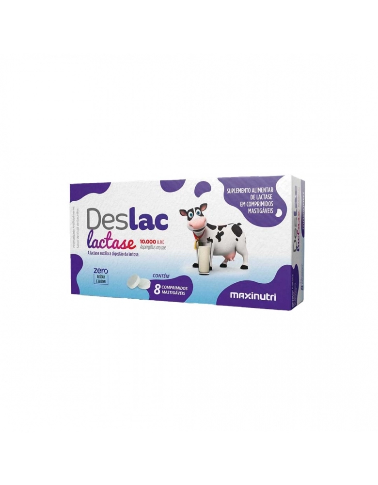 PRODUTOS>NUTRACÊUTICOS>MAXINUTRI>DESLAC LACTASE 10.000 FCC MASTIGAVEL COM 08 COMP MAXINUTRI
