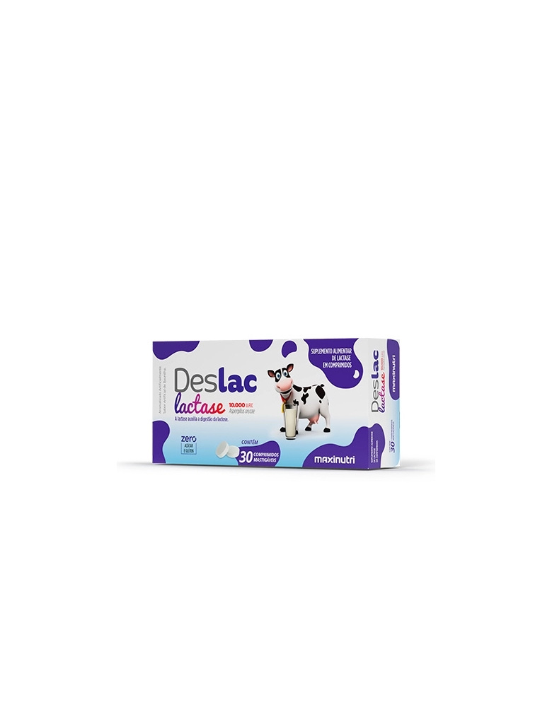 PRODUTOS>NUTRACÊUTICOS>MAXINUTRI>DESLAC LACTASE 10.000 FCC MASTIGAVEL COM 30 CP MAXINUTRI