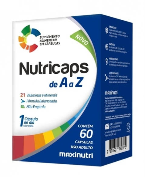 PRODUTOS>NUTRACÊUTICOS>MAXINUTRI>NUTRICAPS SUPLEMENTO VIT E MINERAL COM 60 MAXINUTRI