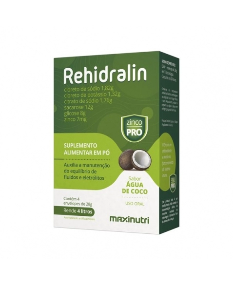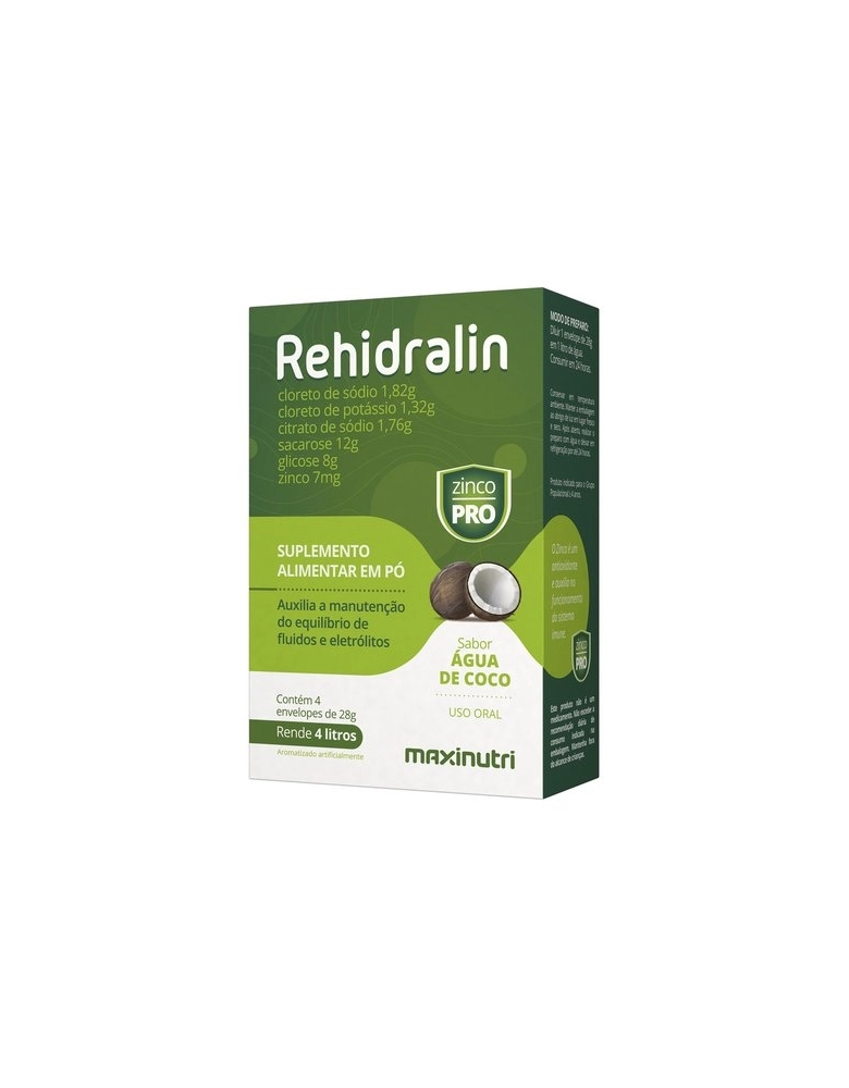 PRODUTOS>NUTRACÊUTICOS>MAXINUTRI>REHIDRALIN - CX COM 04 ENVELOPES DE 28G - SABOR ÁGUA DE COCO MAXINUTRI