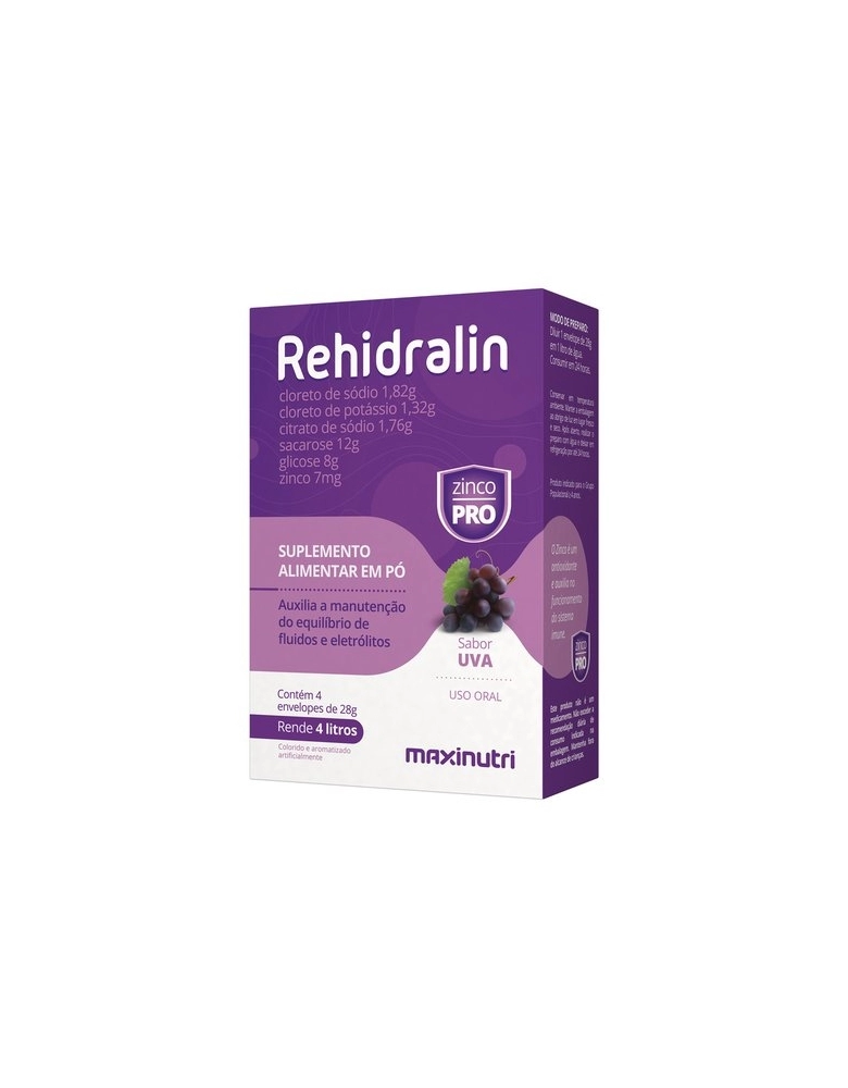 PRODUTOS>NUTRACÊUTICOS>MAXINUTRI>REHIDRALIN - CX COM 04 ENVELOPES DE 28G - SABOR UVA MAXINUTRI