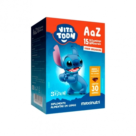 PRODUTOS>NUTRACÊUTICOS>MAXINUTRI>VITATOON STITCH POLIVITAMINICO AAZ SABOR BRIGADEIRO 30 GOMAS MAXINUTRI