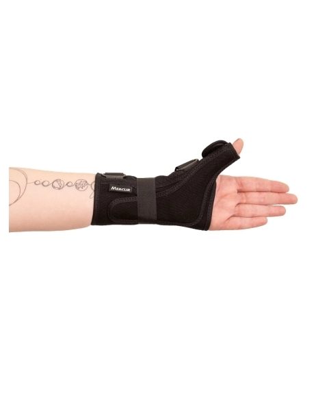 Munhequeira para imobilizacao e suporte do punho. Indicada para sindrome do tunel carpal, tendinite e recuperacao pos-lesao. Material respiravel e confortavel. MERCUR.