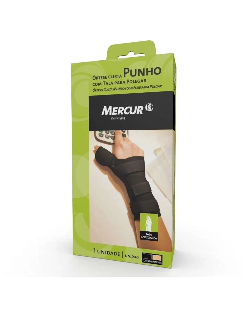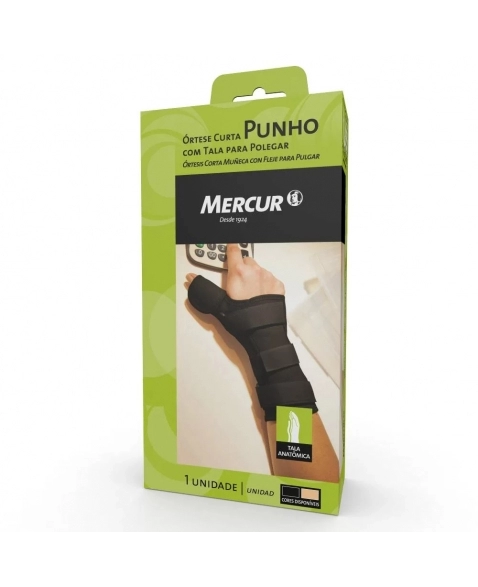 Munhequeira para imobilizacao e suporte do punho. Indicada para sindrome do tunel carpal, tendinite e recuperacao pos-lesao. Material respiravel e confortavel. MERCUR.