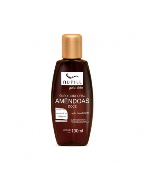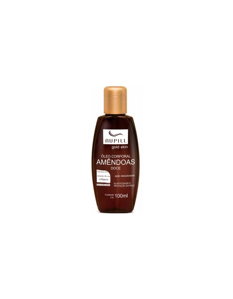 PRODUTOS>COSMÉTICOS>OLEOS CORPORAIS E FACIAIS>OLEO CORP. DE AMENDOAS SEMENTE DE UVA E COLAG. GOLD SKIN 100ML NUPILL