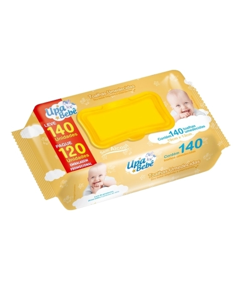TOALHAS UMEDECIDAS UPA BEBE LV140 PG120 AMARELA C/TAMPA WIPEX HYGIMAX