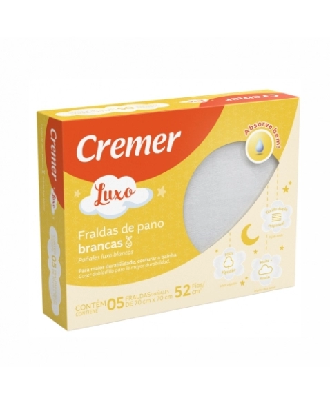 PRODUTOS>INFANTIL>PUERICULTURA>FRALDA LUXO BRANCA COM 5 CREMER
