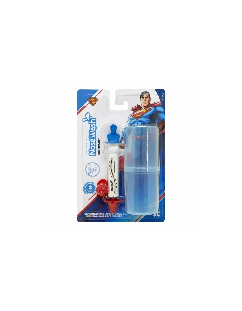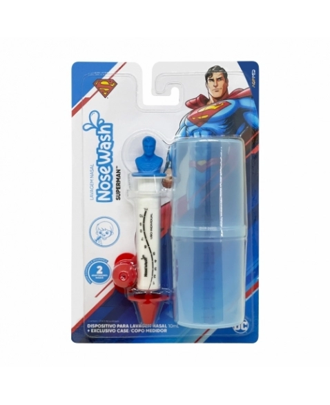 PRODUTOS>INFANTIL>PUERICULTURA>KIT NOSEWASH PARA LAVAGEM NASAL 10ML SUPERMAN+CASE MEDIDOR AGPMED