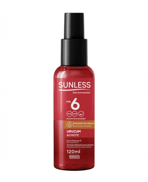 PRODUTOS>COSMÉTICOS>SUNLESS>OLEO BRONZEADOR URUCUM FPS 6 SUNLESS 120ML FARMAX