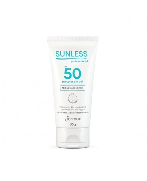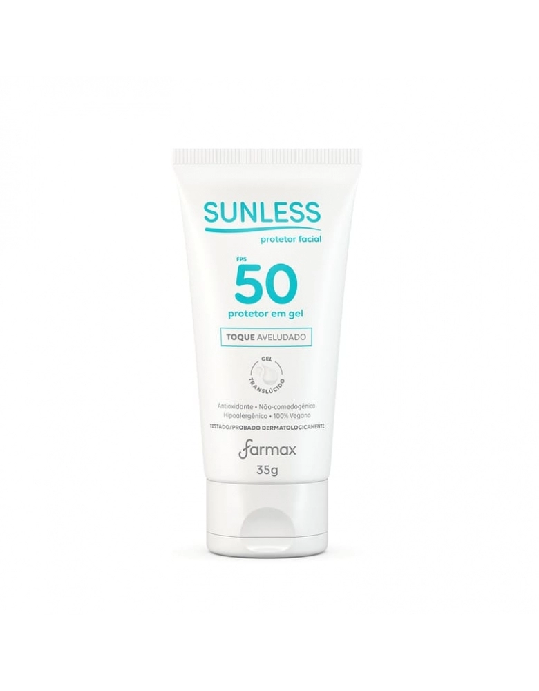 PRODUTOS>COSMÉTICOS>SUNLESS>PROTETOR SOLAR FACIAL FPS 50 GEL TRANSLUCIDO 35G SUNLESS FARMAX
