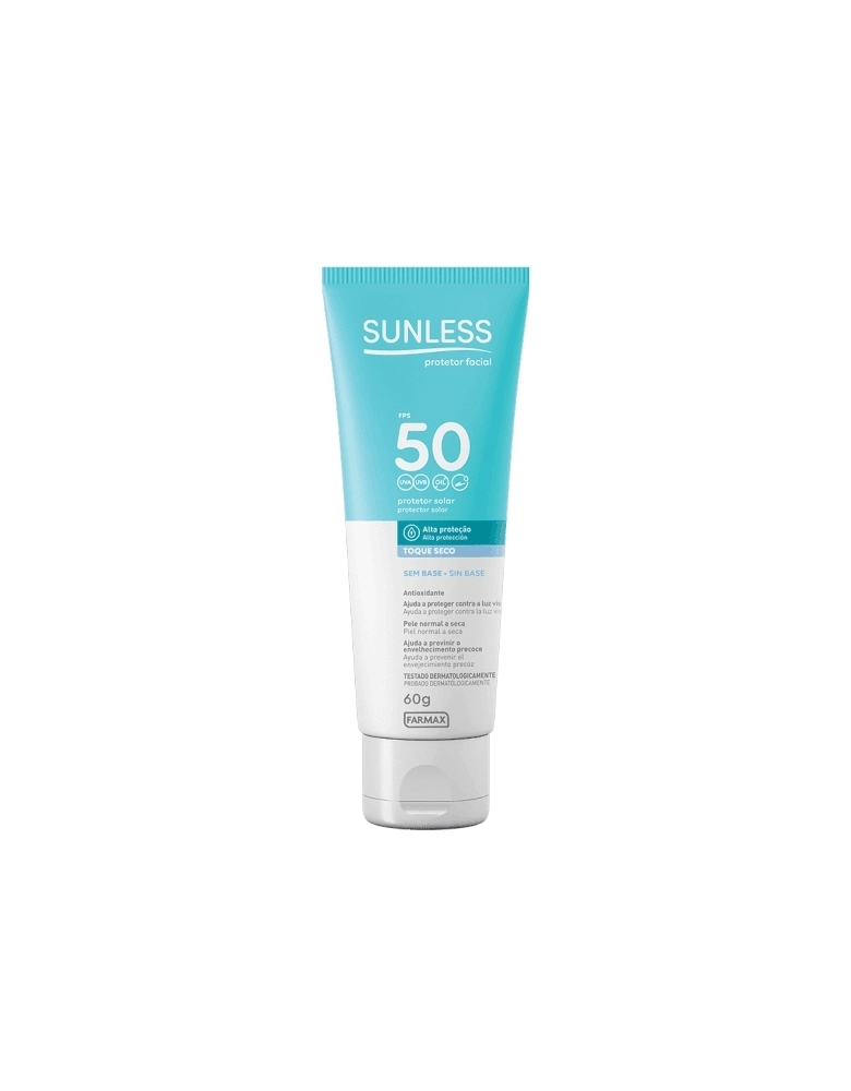 PRODUTOS>COSMÉTICOS>SUNLESS>PROTETOR SOLAR FACIAL FPS 50 SEM COR 60G SUNLESS FARMAX