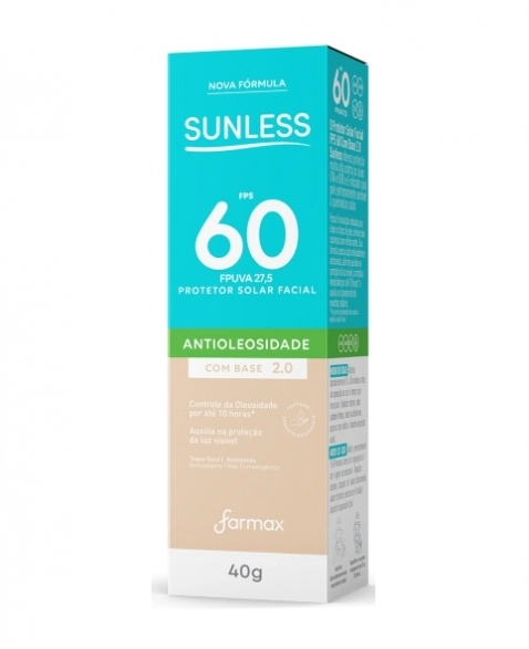 PRODUTOS>COSMÉTICOS>SUNLESS>PROTETOR SOLAR FACIAL FPS 60 C/BASE 2.0 SUNLESS 40G FARMAX