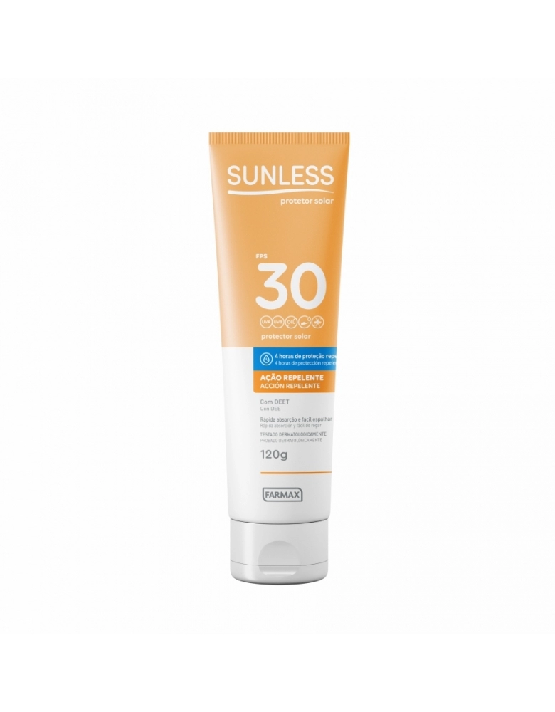 PRODUTOS>COSMÉTICOS>SUNLESS>PROTETOR SOLAR FPS 30 COM REPELENTE SUNLESS 120G FARMAX
