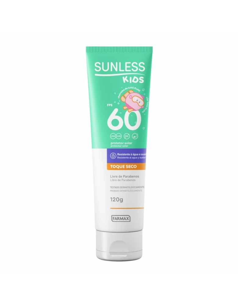 PRODUTOS>COSMÉTICOS>SUNLESS>PROTETOR SOLAR FPS 60 KIDS SUNLESS 120G FARMAX