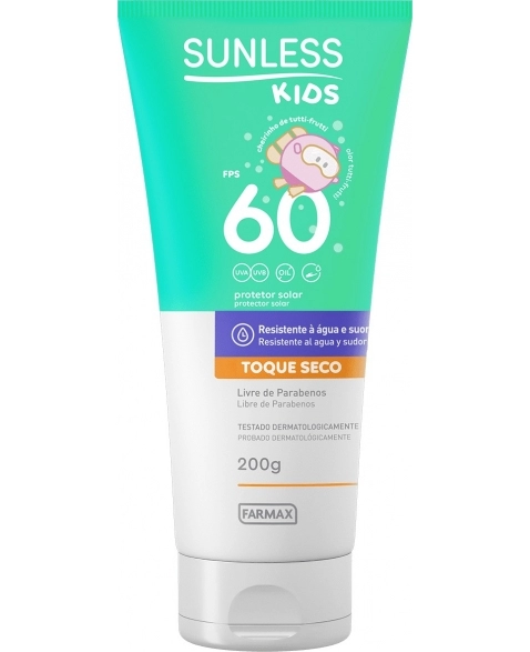 PRODUTOS>COSMÉTICOS>SUNLESS>PROTETOR SOLAR FPS 60 KIDS SUNLESS 200G FARMAX